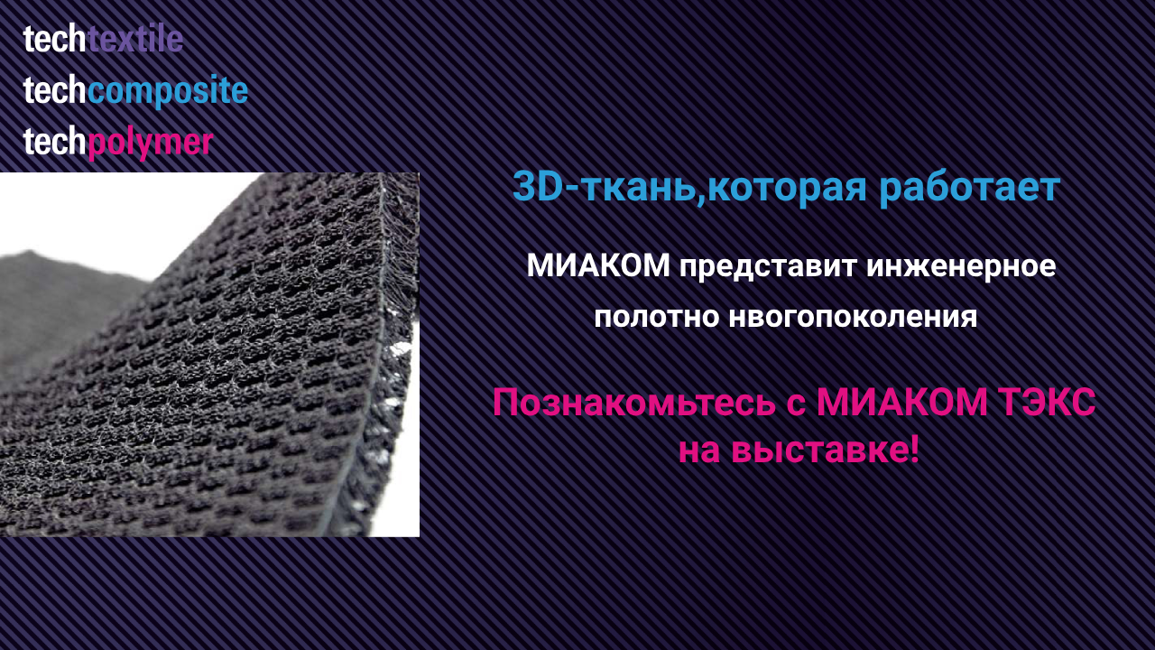 Инженерные материалы всё чаще становятся не вспомогательным, а ключевым элементом сложных решений. Один из таких примеров будет представлен на выставке Techtextile | Techcomposite | Techpolymer 2025 — объёмное 3D-полотно МИАКОМ ТЭКС.